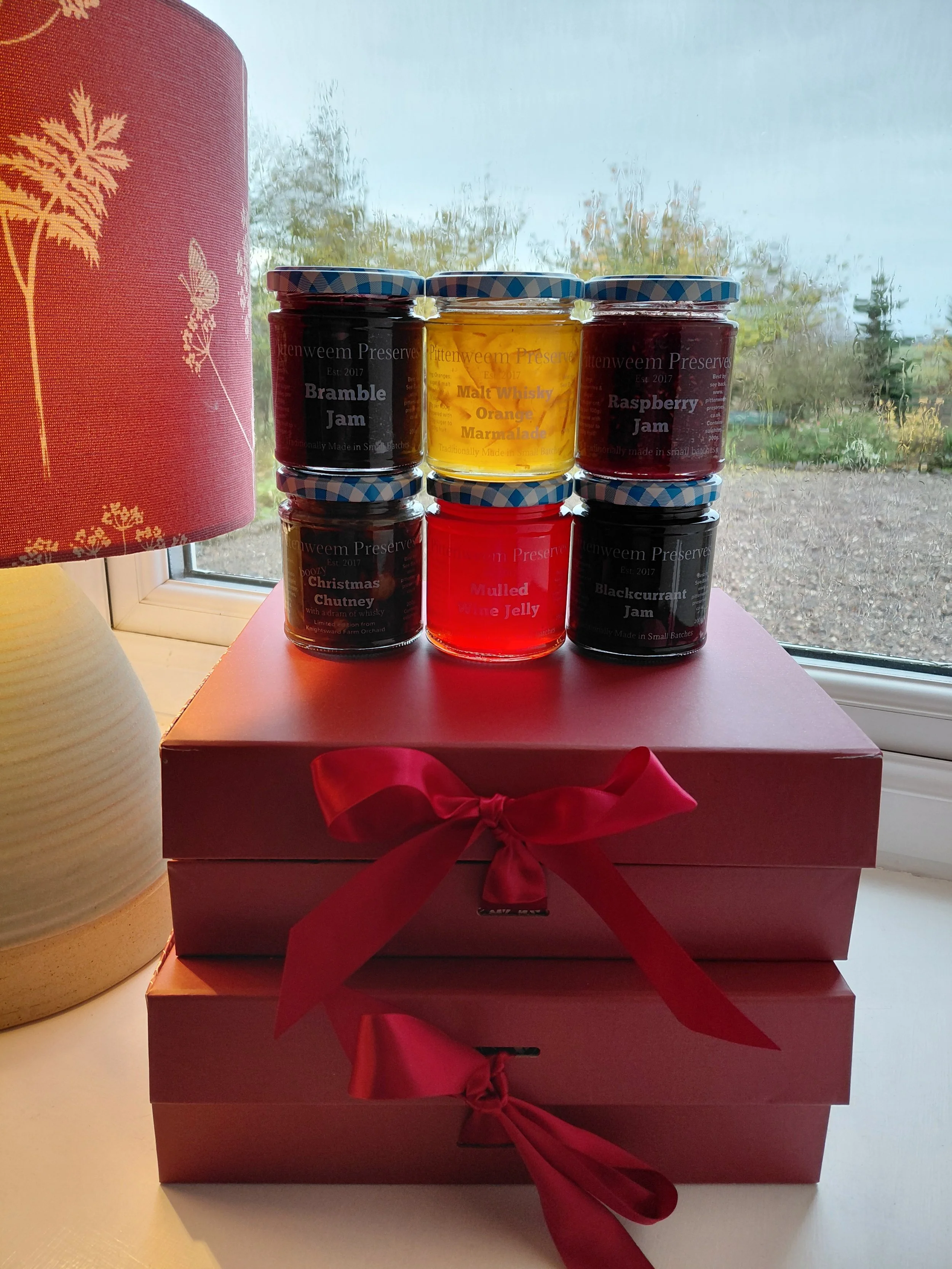 A beautiful gift box filled with 6 of our best selling preserves and finished with a Christmas card featuring a watercolour by Fiona. Add a personal greeting too!